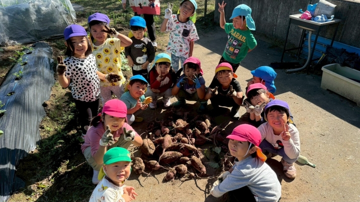 保育園隣の畑で、おいしい旬の野菜作りを通して多くの食材に触れ楽しい食育を体験しています。月ごとのクッキングや行事食も大切にしています。